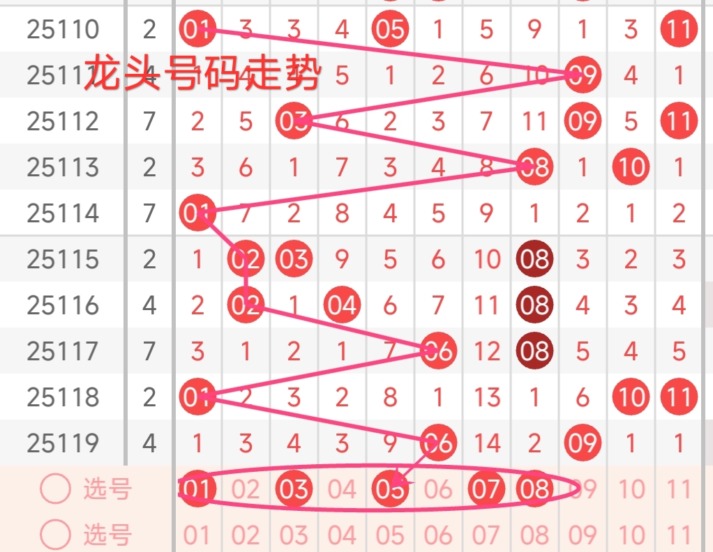 龙头号码走势分析:
