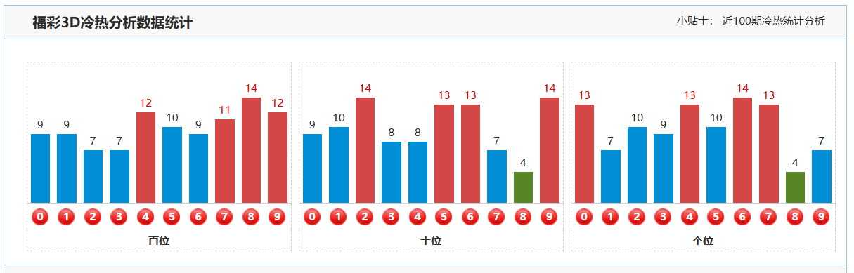 2. 十位分析:上期福彩3D的十位开出了号码6,这是一个大的偶数。从近期的开奖数据来看,十位号码在多个位置上频繁出现,表现出较强的活跃性。然而,值得注意的是,上期的十位号码振幅变化较小且下降趋势。本期在十位的分析中,我们预期该位会继续下降,即关注那些与上期相比数值有所减小的号码。因此,本期重点关注号码01234679