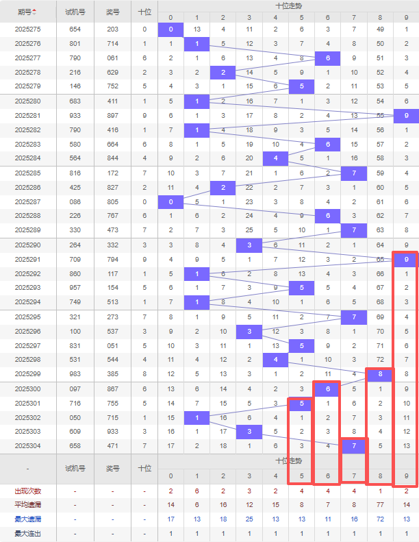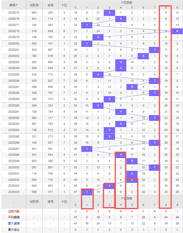 2025305期五码定位(百位、十位、个位):