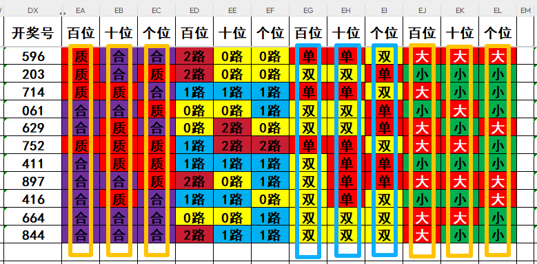 3,目前开奖号个位号码球11天当中,质数(12357)开出了5次,合数(04689)开出了6次,本期重点关注开奖号个位号码球质数的回补!