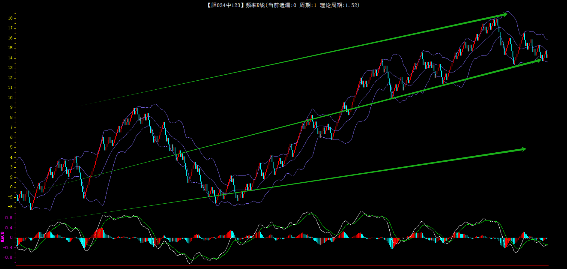 整体趋势上行,上边沿线趋势向上,下边沿趋势也是向上,节点震荡,当前开1期,本期关注。