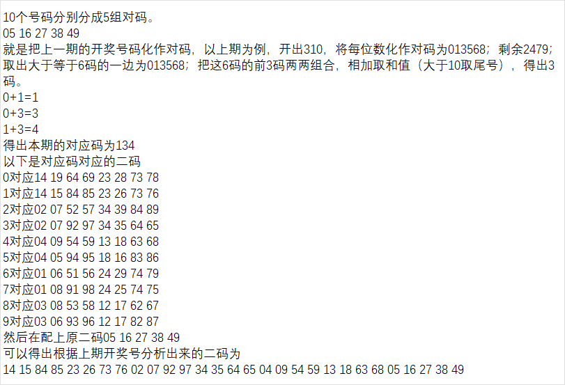 那么上期开出310,相邻号码为01249,则本期胆组二为01249。