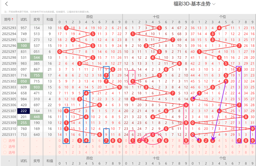 5、综上所述福彩3D-第312期定位推荐信息如下: