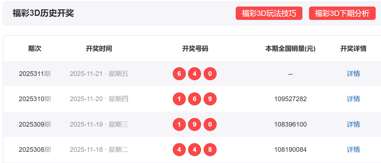 福彩3D上一期,开奖号码640,形态为组六,奇偶比为0:3,012路数值表现为010,和值10,和尾0,跨度6。