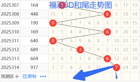 们依次是60367和尾,按照012路排序是00001路和尾,后面两是同路,今天就是0路2路的和尾,为什么这么讲呢,这个是个大概率的问题,也是根据长期的研究规律定的,准确率相当高,我定了0 2路的和尾,也就是0369258和尾,那么我们再来看和值,按照和值除3余数的话,可以分为余0 1 2路. 那么我们来看310期和值16余1,311期和值10余1,312期和值23余2,313期和值16余1,314期和值17余2,那么本期看和值看余2余1,,根据上面的和尾那么就只有 10 13 16 19 8防12 和值