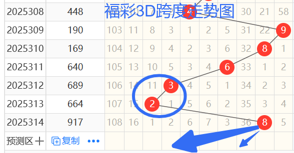 依次是86328跨度,按照路数转换关系来看,那么跨度我们暂定147369跨 ,本期个人比较看好3 7跨。