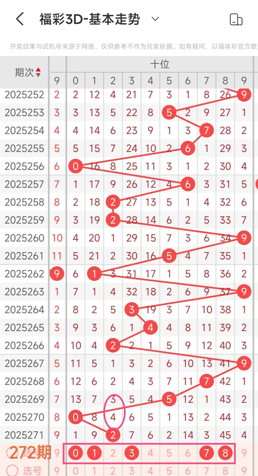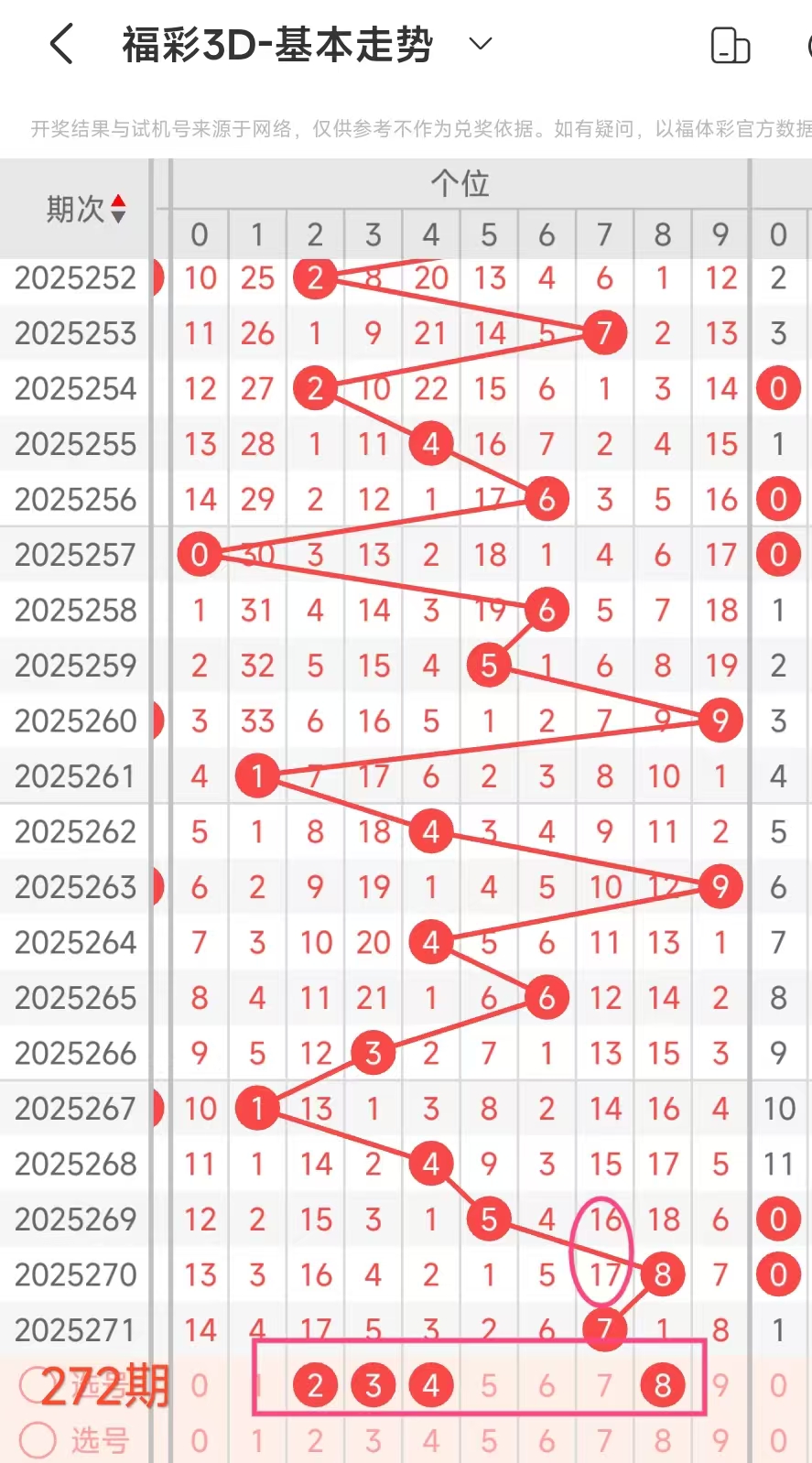 3、当个位开出7后下期开出:812800622,经统计0号出2次、1号出现1次、2号出现3次、3号出现0次、4号出现0次、5号出现0次、6号出现1次、7号出现0次、8号出现2次、9号出现0次。观察发现028号出现靠前优先选。