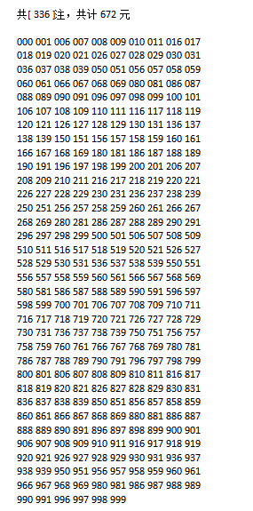 方案1:84注直选:(168元)