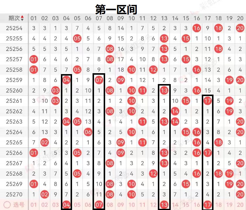 上期第一区间开出(02 08 10 20)四个号码球。上期一区间四个号码球在一区间落位,区间走出温态四码出号区间走出对应趋势,一区间前端开出独码02-08对应号码球落位。后端凤尾独码20号码球开出那么通过分析研判从区间的落位趋势去看一区间整体区间落位号码分布在区间的前后两端。那么本期我们在一区间进行研判时一定要考虑后端号码的回补落位,通过区间的走势特点去研判本期的走势,中后端号码球爆冷开出。我们要注意区间冷态号码球的回补开出,那么本期我们要注意区间的走势端号码趋势转换的可能,因此我们要谨慎操作防止区间走出回补态更为合理。
