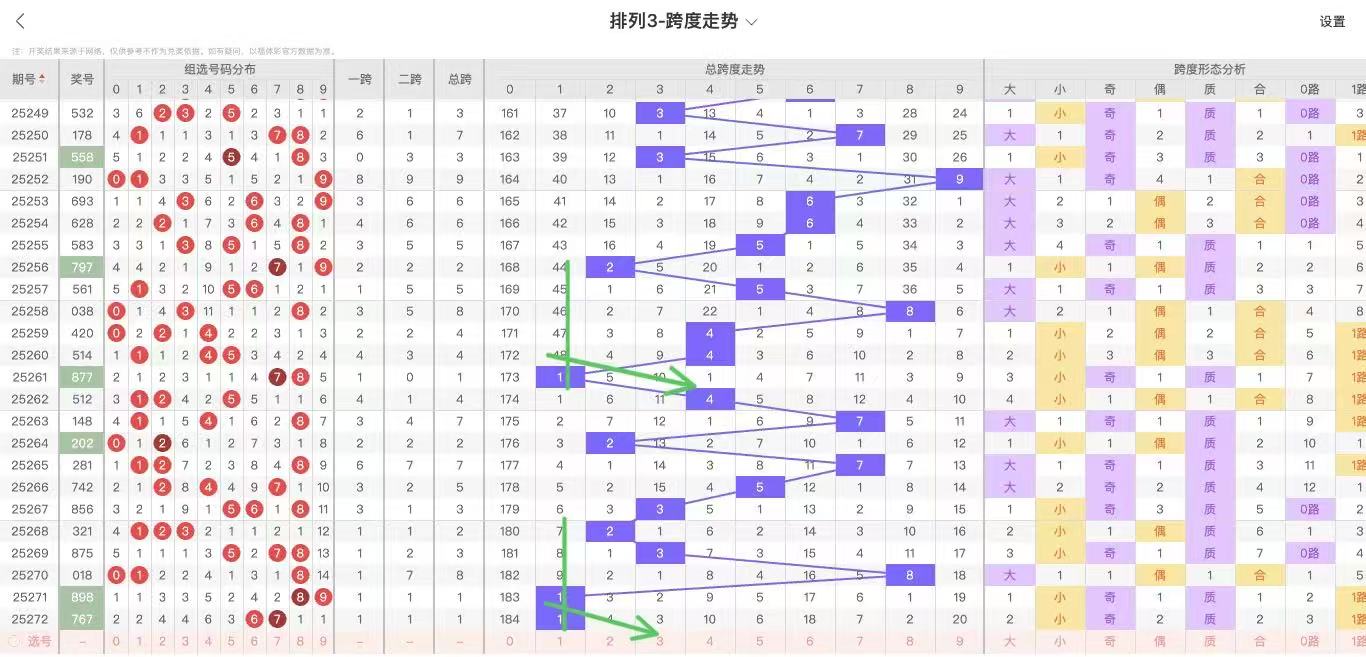 根据走势对跨度观察统计得到以下分析结果: