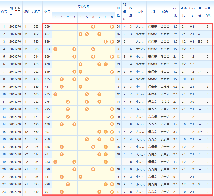 1、统计往年同期开奖号码