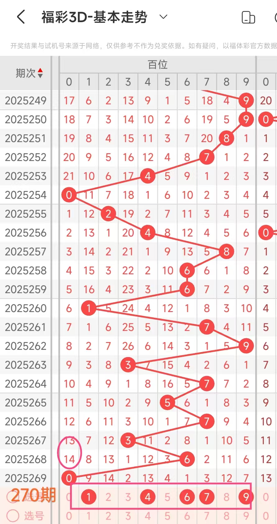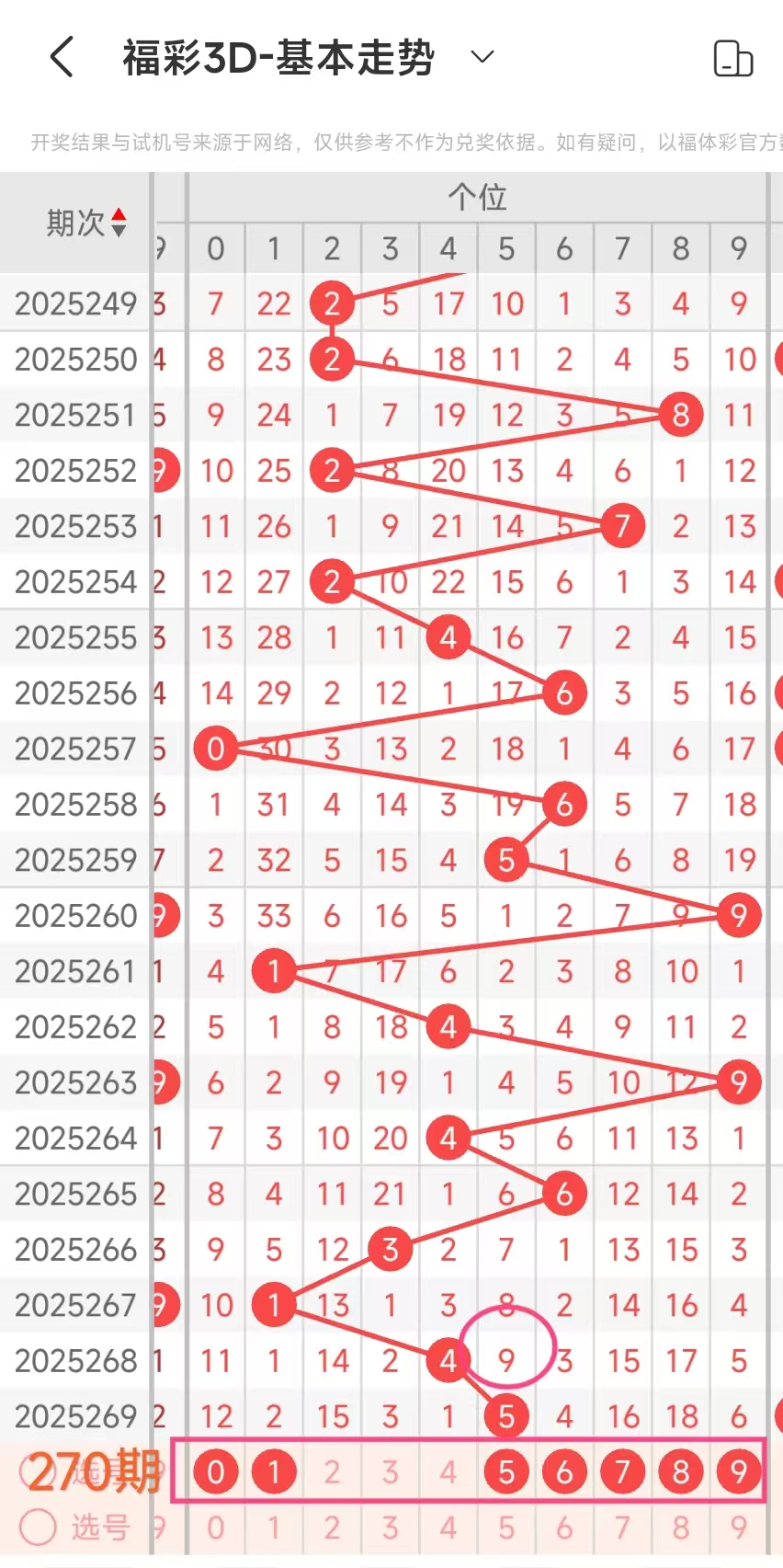 4、通过上述我们得到这期百十个位分析号码:百位289,十269、个位9