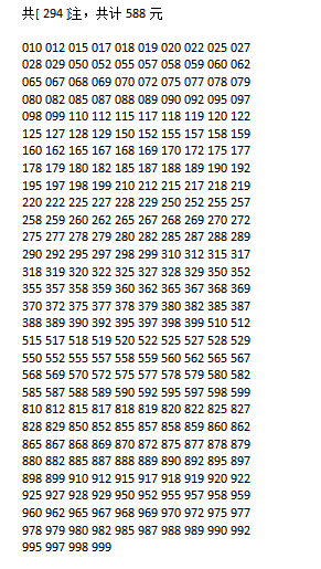 方案3:精选6注直组(24元)