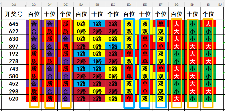 3,目前开奖号个位号码球11天当中,质数(12357)开出了6次,合数(04689)开出了5次,本期重点关注开奖号个位号码球合数的回补!
