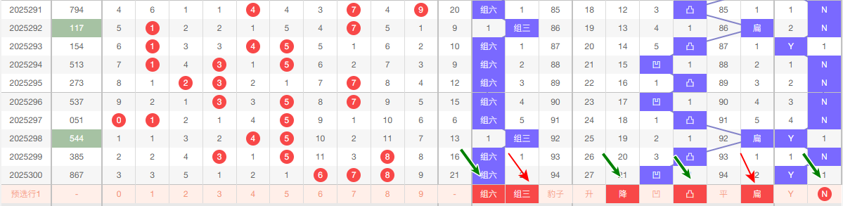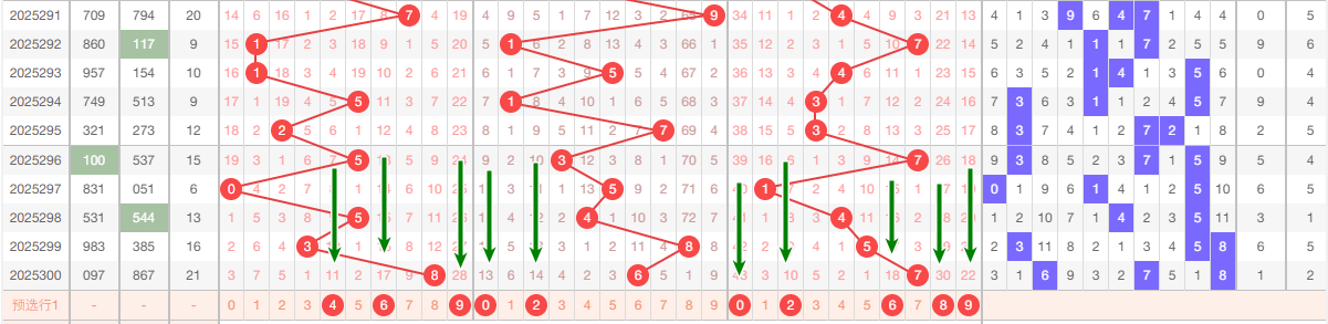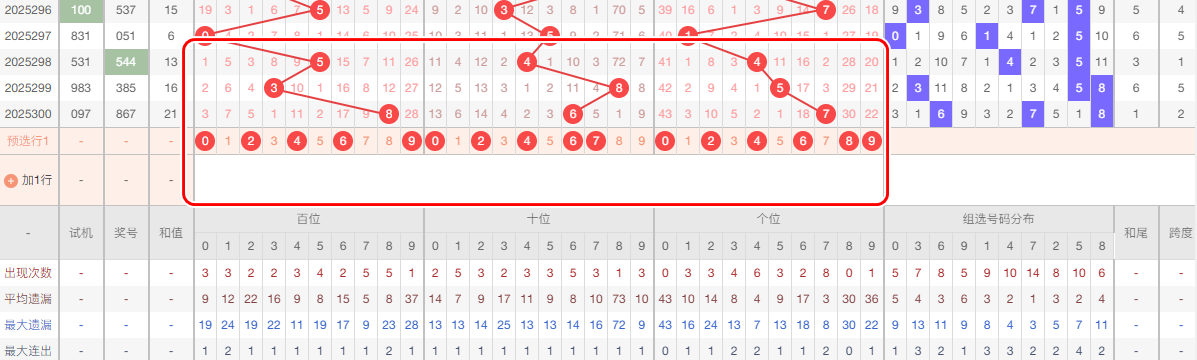 在最近的5期当中百位大数出现的频次3次 小数出现2次 ,从图上来看本期百位出号走大,大家注意防守配号