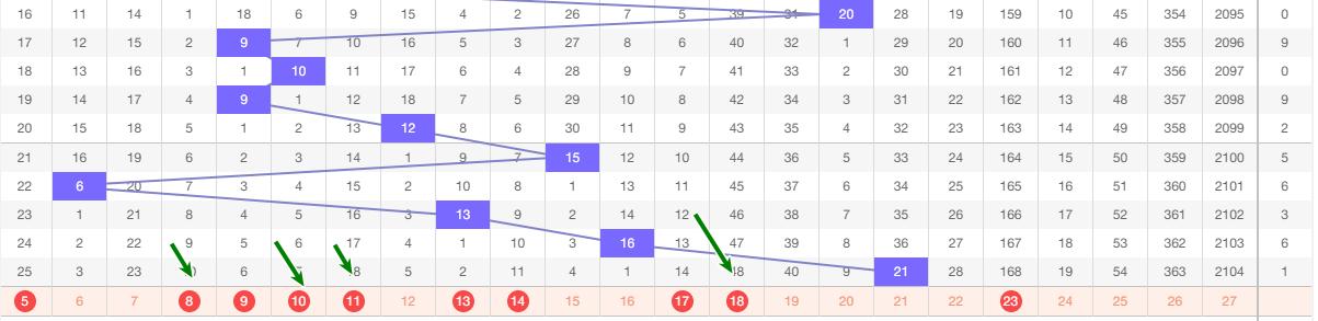本期看好 范围5-23 之间定和值8-10-18-11从图上来看近5期的和值21 15 6 13 16 13 161路和值 15 6 210路和值 无2路和值本期看好2路和值参考 这五期和值波动不大 下期防守大波动