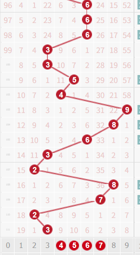 下面咱们再看一下个位的走势,根据数据遗漏分析,个位最近走大跨度大振幅比较多,走大数居多,这里的大数指56789,小数指01234,近30天的数据来看走奇数比较多也就是13579,个位的冷码分别是623,综合上述如图