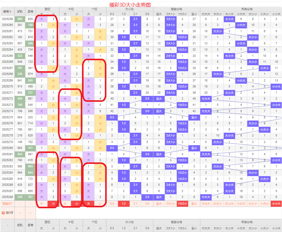 上期大小比为3:0,全大的号码组合方式,从近五期出现情况看,大号码出现9次,小号码出现6次,大号码出现较多,本期侧重两小的号码组合,本期百位侧重小号码,十位侧重小号码,个位要侧重看大,侧重小小大或者小大大的号码组合,根据大小做五码定位01234/01234/56789或01234/56789/56789