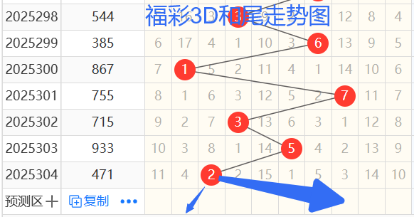 们依次是17352和尾,按照012路排序是11022路和尾,后面两期是同路,今天就是1路或0路的和尾,为什么这么讲呢,这个是个大概率的问题,也是根据长期的研究规律定的,准确率相当高,我定了1 0路的和尾,也就是1470369和尾,那么我们再来看和值,按照和值除3余数的话,可以分为余0 1 2路. 那么我们来看300期和值21余0,301期和值17余2,302期和值13余1,303期和值15余0,304期和值12余0,那么本期看和值看余2 余1,根据上面的和尾那么就只有 7 11 14 17 10 13 16 19和值