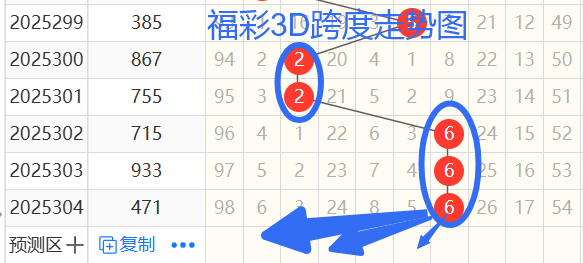 依次是22666跨度,按照路数转换关系来看,那么跨度我们暂定13579跨 ,本期个人比较看好1 3 5跨。