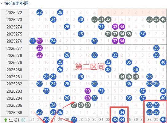 上期二区开出6个奖号(22.24.25.34.38.39)上期回顾二区开出6个奖号二区间在上期落位同比前期的话呈现了一个不变的落位趋势,先来看本期号码23整体活跃度较温冷,在近30 期里有一定的间歇性出现,不是每期都开,整体走势不是很稳定的注意参考。号码34近期热度较好,间隔性整体来说的话比较稳定的,说明其在当前阶段活跃度较热注意防守。号码33近期活跃度较温热,有一定的间歇性近期整体走势相对较温热,没有特别明显的冷热趋势变化,号码40近30期内活跃度较温热没有连续出现形态走势,出现的频次不是很稳定.