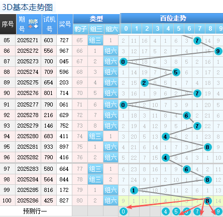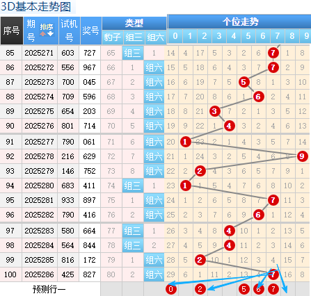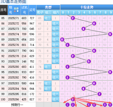 上期的3D个位7号球,上期开出的是组六按照形态的话本期打组六形态,上期7号球的落位是个位上一个大号的五跨度的落位形态,本期先来看6号球和7号球在个位还是有机会走出两个大数的落位点这里要注意这里是一个常搭配的落位点注意抉择一个小周期回补参考就好了,然后2号球是一个拉拽的落位趋势要注意参考,3号球这里的落位点要注意走出冷码的一个概率这个点位还是非常好的也是一个落位点,还有就是0号球的小号落位点也是一个冷码的落位点。
