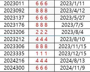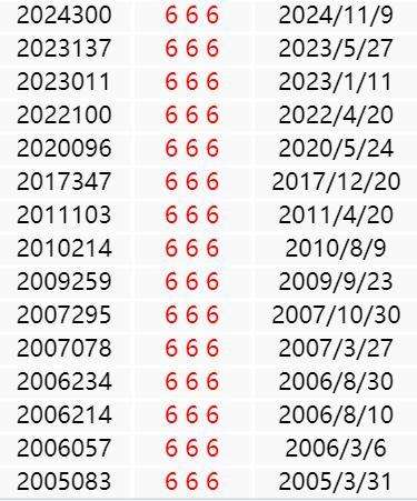 有意思的是,纵观福彩3D历史上15次开出“666”豹子号的时间,这是首次在11月份出现“666”豹子号。