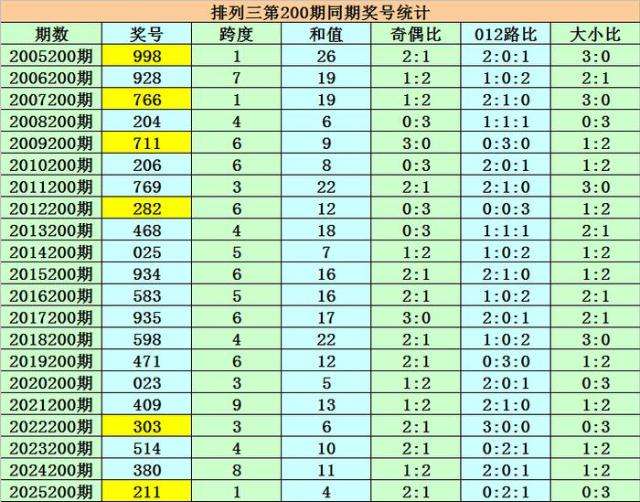 上期回顾:排列三第2025200期奖号为211,组选类型为组三,奖号大小比为0:3,012路比为0:2:1,奇偶比为2:1。