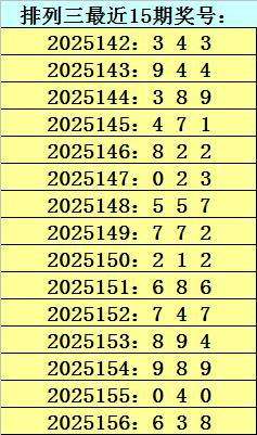四叔体彩排列三第2025157期推荐: