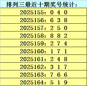 上期回顾:排列三第2025164期开奖号码为519,历史上组选出现54次,直选出现9次。