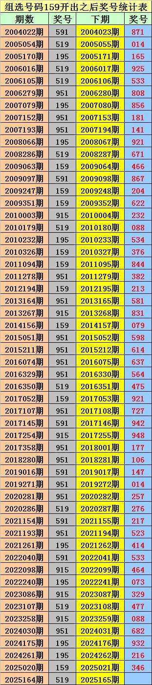 排列三组选159出现之后下期分别开出:871、014、165、925、533、808、856、181、141、921、671、466、867、204、622、232、088、534、376、844、382、213、581、831、079、598、614、637、564、475、921、727、942、948、177、106、147、014、257、276、217、523、414、533、464、073、329、477、088、682、932、216、346。