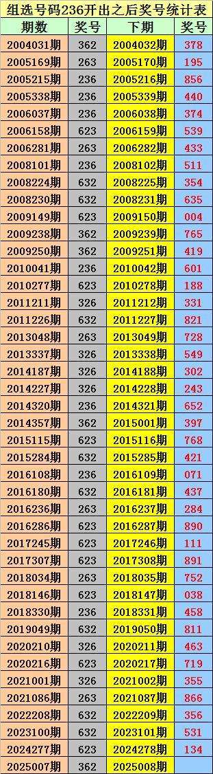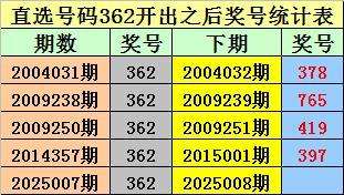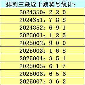 上期回顾:排列三第2025007期开奖号码为362,历史上组选出现43次,直选出现5次。