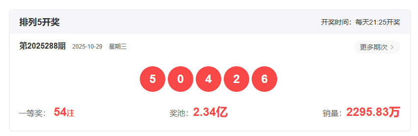 上期排列5开奖号码回顾