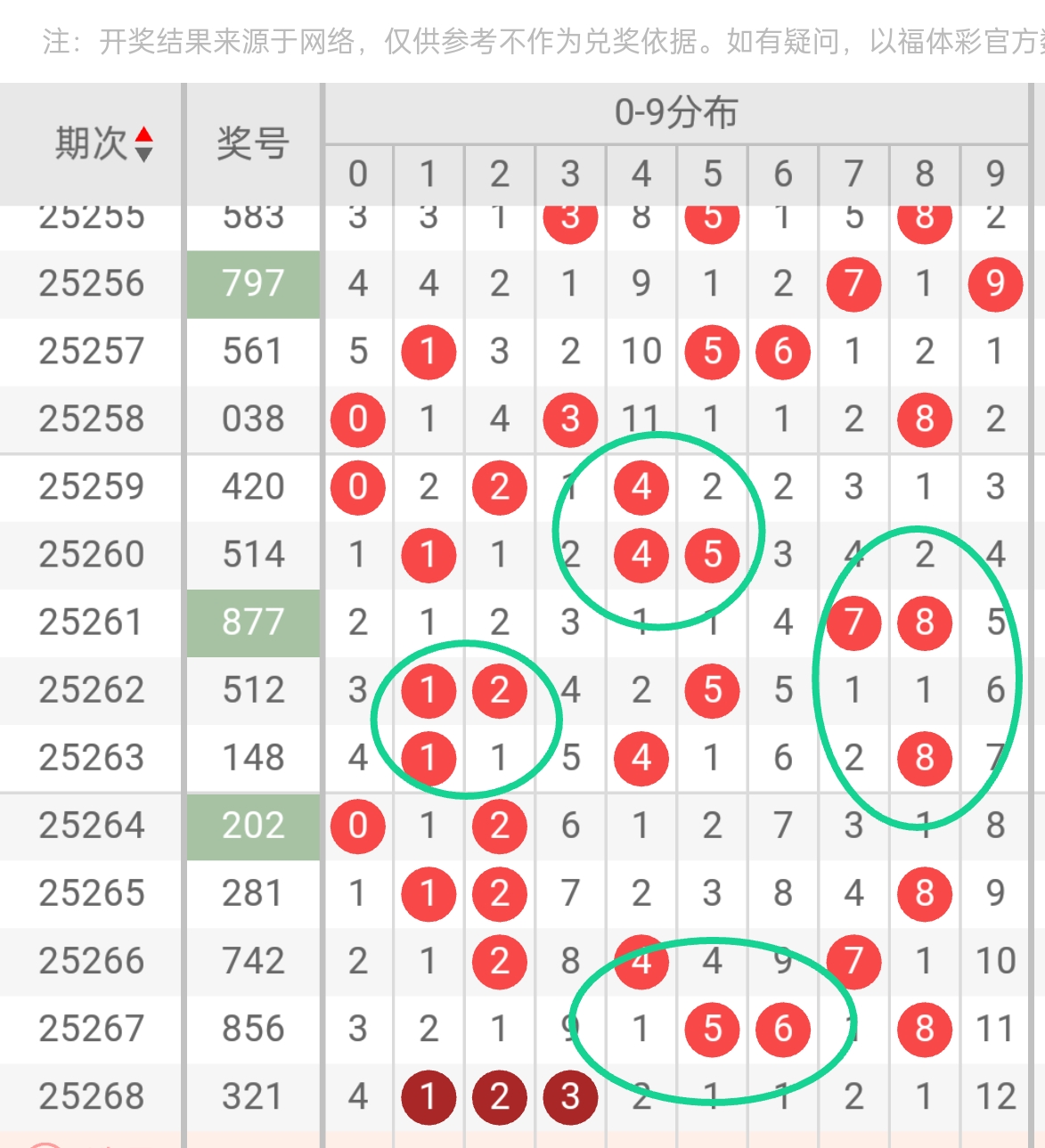 奇偶与大小特征:数字6为偶数,在位置4的奇偶分布中,偶数出现17次,明显多于奇数(13次)。数字6属于大数,在大小比例中,大数出现19次,占据绝对优势,这为选择提供了充分支持。