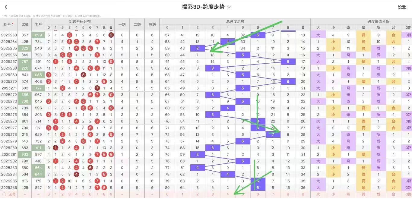 2025287期福彩3D跨度走势图如下: