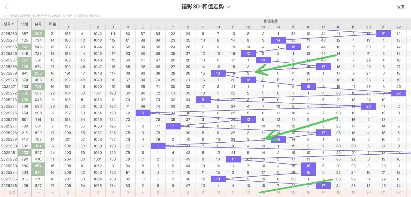 2025287期福彩3D和值走势图如下: