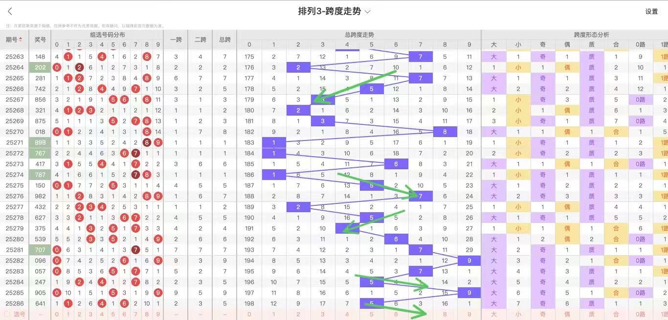 287期体彩P3跨度走势图如下: