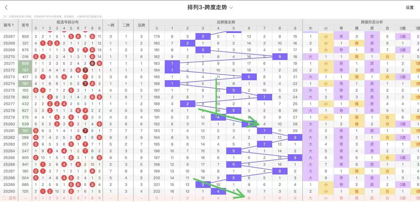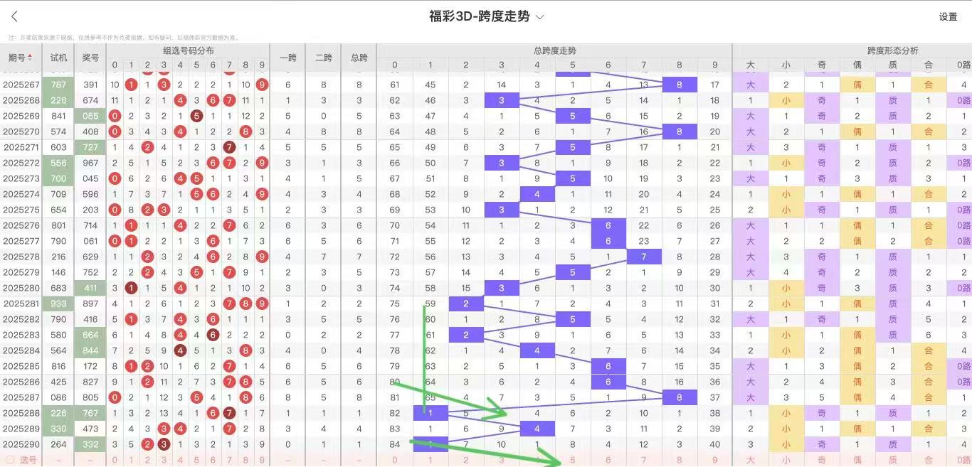 2025291期福彩3D跨度走势图如下:
