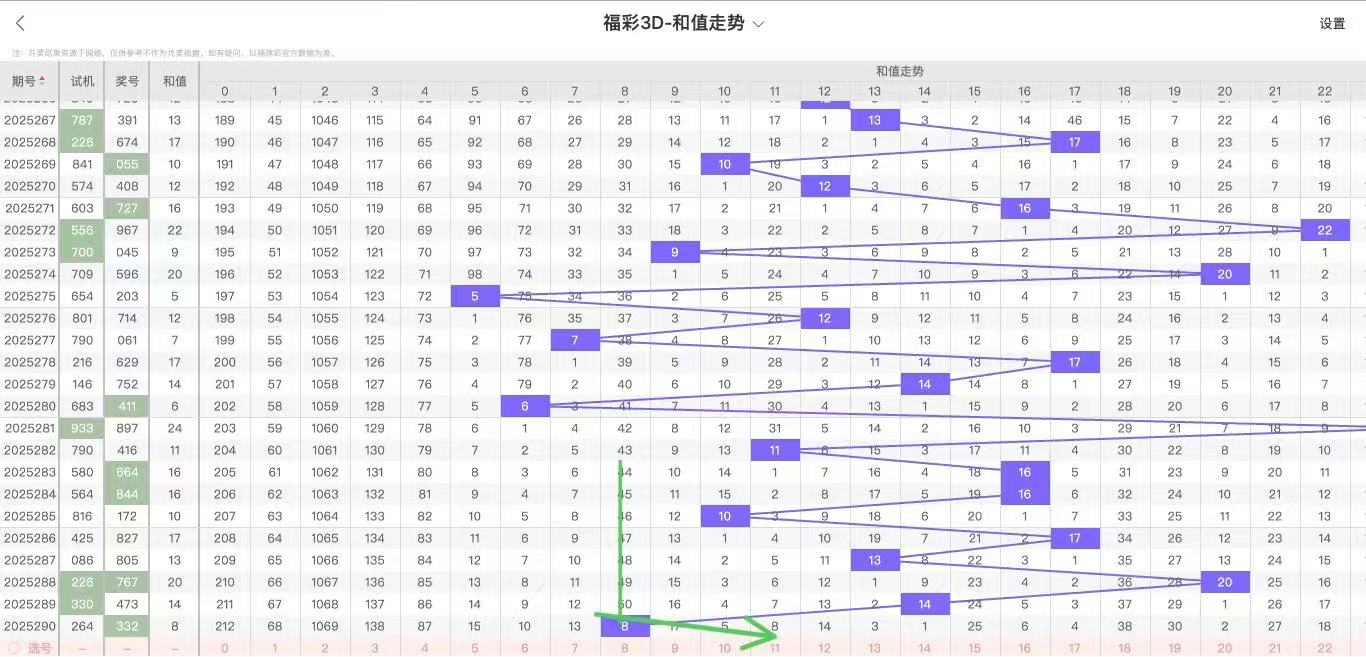 2025291期福彩3D和值走势图如下: