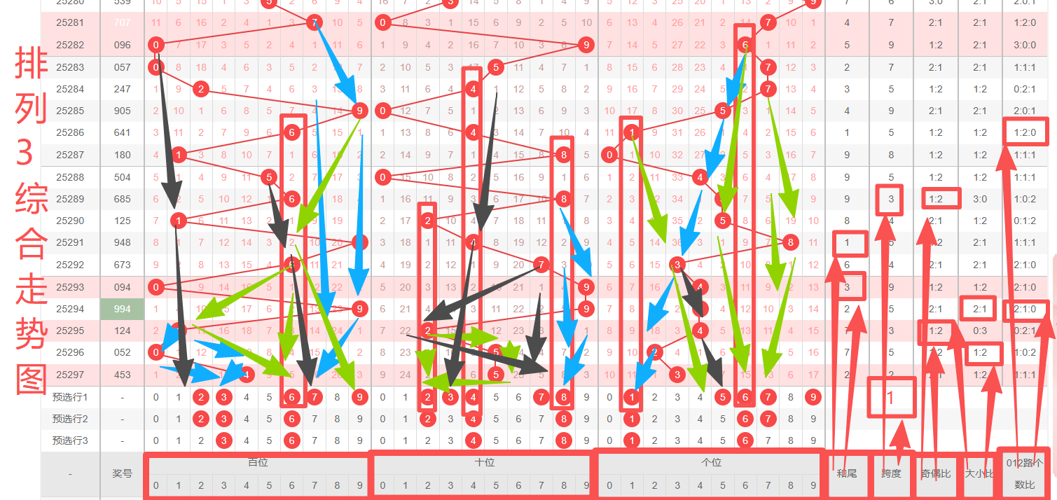 三、体彩排列3第2025298期选号分析预