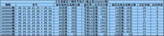 体彩大乐透第2025052期奖号为:02 04 11 29 30+02 08,前区号码大小比开出2:3,012路比开出1:1:3,奇偶比开出2:3,后区号码和值开出10,跨度开出6。