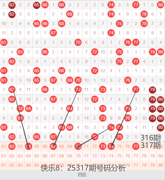 四区间61-80号码球走势,如下图: