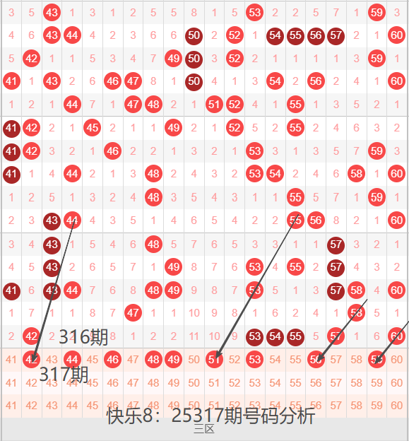 三区间41-60号码球走势,如下图:
