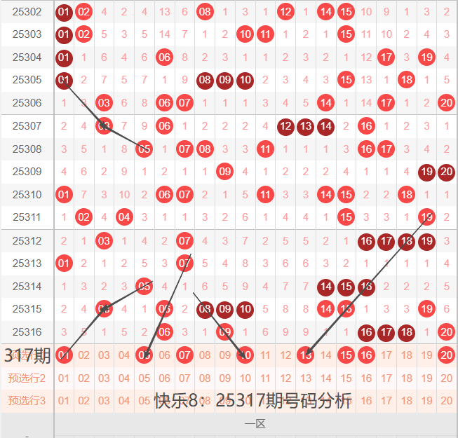 25317期,我们先看下一区间:01-20号码球,如下图:
