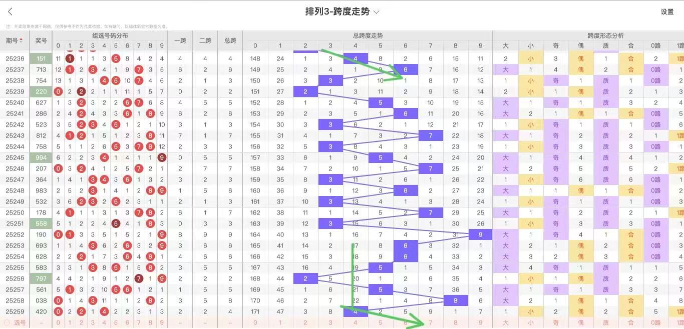 根据走势对跨度观察统计得到以下分析结果: