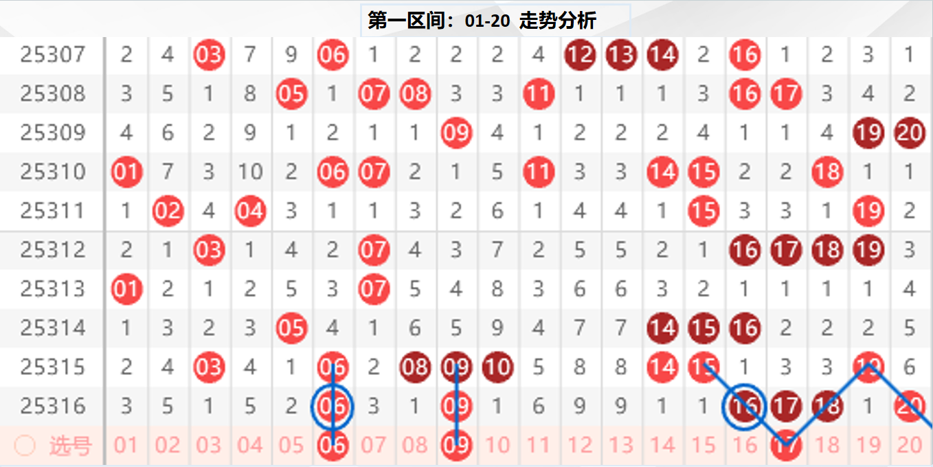 一区分析:【01-20】(走势图标注号码非小黄车大底,请谨慎参考,具体思路将在直播间分享讨论)