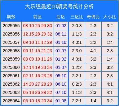 开奖回顾:大乐透第2025064期奖号为:05、10、18、20、34 + 01、08。