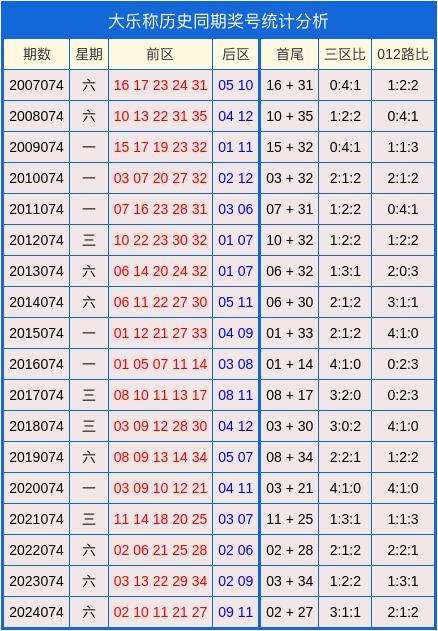 大乐透历史同期奖号统计图