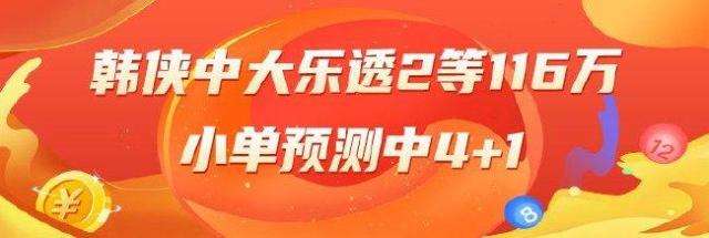 韩侠大乐透:上期预测中二等奖收获116万元,小单中4+1,近期预测中530万元!【查看专家推荐】