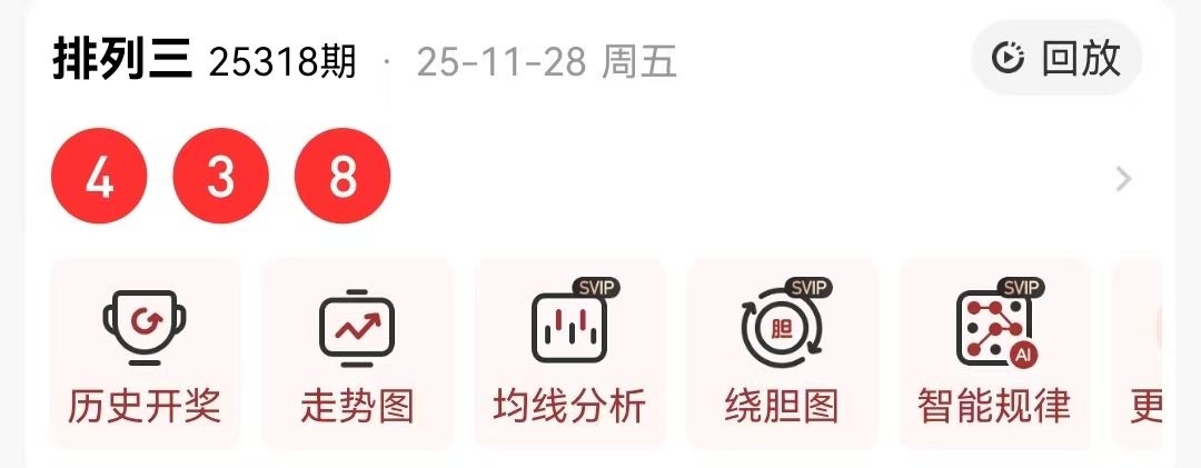 我们先来回顾一下上一期(第2025318期)的开奖结果是438,其中百位开出的小数偶数4,十位开出小数奇数3,个位则开出了大数偶数8。这个组合在大小比上呈现为1:2的小数优势,在奇偶比上则是1:2的偶数优势,而在012路比中,我们看到了1:1:1的比例分布。上期奖号的总和值为15,跨度为5,形态特征为半顺组六,这些数据为我们接下来的分析提供了基础